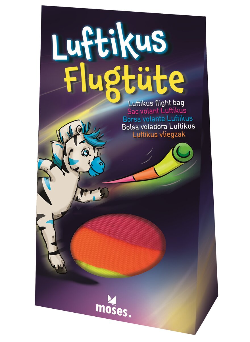 Der rasante Flugspaß! Der Luftikus wird einfach mit der geöffneten, breiten Seite nach vorne geworfen und schon gleitet er davon. Das ist nicht nur schön anzuschauen, sondern fördert zugleich die Geschicklichkeit und Wurfkraft. Maße: ca. 80 x 15 x 2,5 cm, Gewicht: 75 g. Moses.Herstellerinformationen: