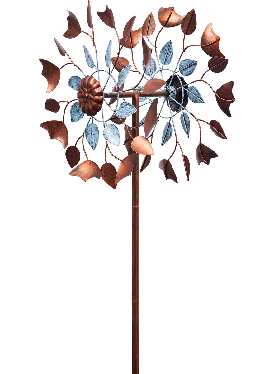 Dieses filigrane und dabei robuste Windspiel besticht durch seine anmutige Eleganz. Mit seiner soliden Metallkonstruktion, wartungsfreien Lagern und doppelten Rotoren ist es so gebaut, dass es garantiert allen Wetterbedingungen standhält. Solide Erdspieße an der Basis sorgen für eine feste Verankerung an windigen Tagen. Farben: Bronze und Blau, Maße (Höhe/Ø): 152 cm (inkl. Bodenanker) x 40 cm. Gewicht: 2,1 kg. Invento.Herstellerinformationen: