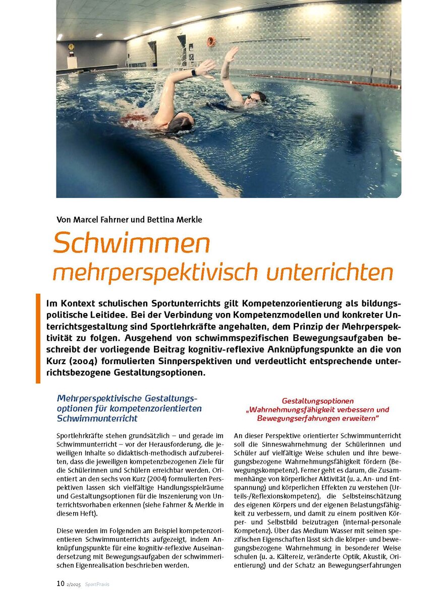 Im Kontext schulischen Sportunterrichts gilt Kompetenzorientierung als bildungspolitische Leitidee. Bei der Verbindung von Kompetenzmodellen und konkreter Unterrichtsgestaltung sind Sportlehrkräfte angehalten, dem Prinzip der Mehrperspektivität zu folgen. Ausgehend von schwimmspezifischen Bewegungsaufgaben beschreibt der vorliegende Beitrag kognitiv-reflexive Anknüpfungspunkte an die von Kurz (2004) formulierten Sinnperspektiven und verdeutlicht entsprechende unterrichtsbezogene Gestaltungsoptionen.Zurück