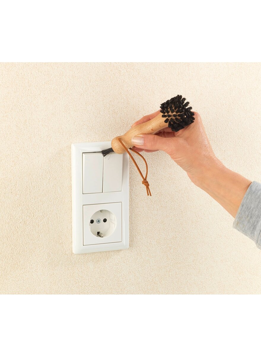 Mit dieser passgenauen Rundbürste lassen sich Steckdosen gefahrlos und zuverlässig von Staub und Schmutz befreien. Der ergonomisch geformte Griff aus Buchenholz liegt gut in der Hand und sorgt für ein entspanntes Arbeiten. Die Borsten bestehen aus widerstandsfähigem Natur-Rosshaar und garantieren beste Reinigungsergebnisse. Ebenfalls praktisch: Die Bürste ist am Ende des Griffes mit einem weichen Pinsel zum Entstauben von Steckdosenrahmen, Lichtschaltern oder auch Tastaturen ausgestattet. Mit Schlaufe zum Aufhängen. Maße (L x Ø): ca. 14 x 4 cm. Materialien: Buchenholz, Natur-Rosshaar und PP. Wenko.Herstellerinformationen: